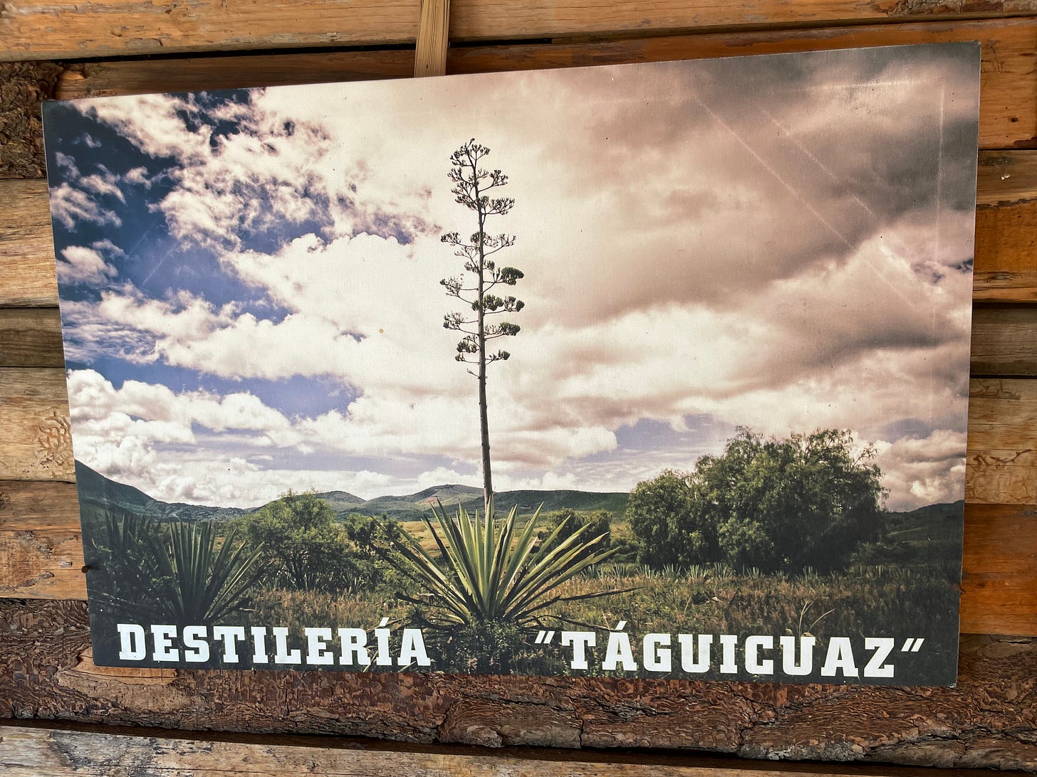 The only photo I have that might give some clue as to a name or place is the one they had there hanging on a wall. Is Destilería Táguicuaz the name of their palenque—or of another one? It seemed less a sign and more a piece of art; so your guess is as good as mine.